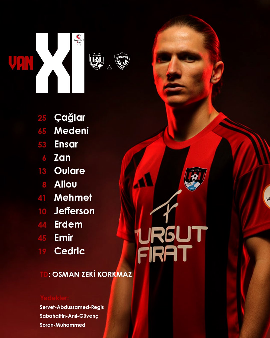 Trendyol 1.Lig'de Vanspor, ligin ilk devresinin son maçında sahasında Hatayspor'u konuk ediyor. Maça kısa bir süre kala her iki takımın sahaya çıkacağı ilk 11'ler belli oldu.