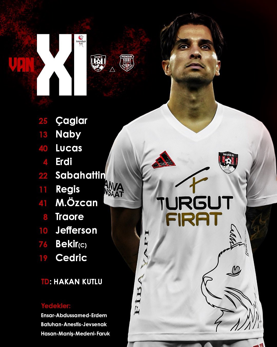 Trendyol 1.Lig’de Vanspor ligin 10.hafta maçında Vanspor, taraftarı önünde ligin güçlü ekiplerinden Pendikspor’u konuk ediyor. Kritik maçta her iki takımın sahaya çıkacağı ilk 11’ler belli oldu.
