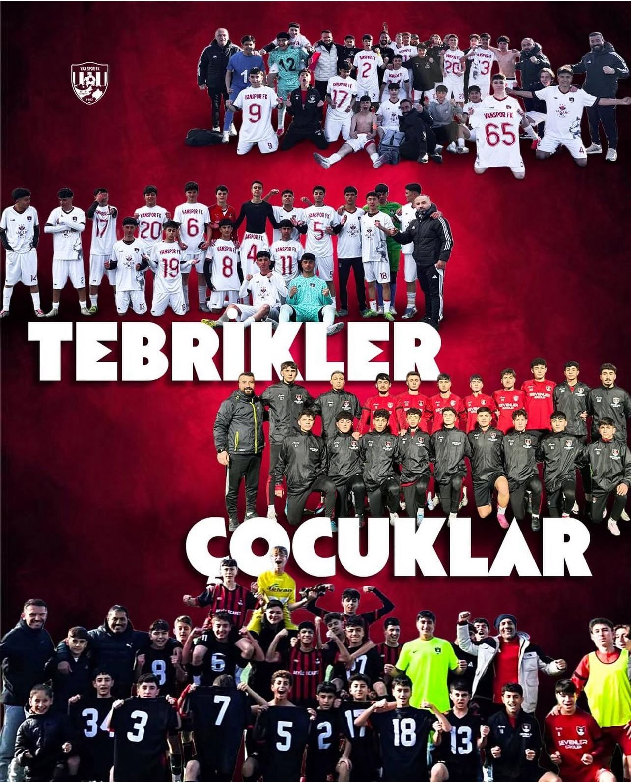 Vanspor FK Elit Akademi bünyesinde mücadele eden U14, U15, U16 ve U17 takımları, gösterdikleri üstün performansla liglerini zirvede tamamlayarak önemli bir başarıya imza attı. Sezon boyunca sergiledikleri istikrarlı oyun ve mücadeleci performanslarıyla dikkat çeken genç yetenekler, Türkiye Şampiyonası Play-Off 1. Tur’a katılma hakkı elde etti. Altyapı organizasyonunda sürdürülen planlı ve disiplinli çalışmaların sahaya yansıdığı bu başarı, Vanspor’un geleceği adına umut verdi. Teknik ekiplerin özverili çalışmaları ve sporcuların azmiyle elde edilen bu sonuç, kulübün altyapıya verdiği önemin de bir göstergesi oldu.
