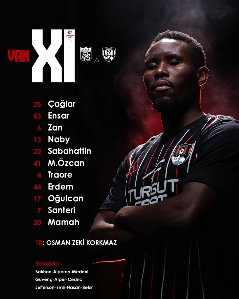 Trendyol 1. Lig’de Vanspor FK, zorlu Sivasspor deplasmanında sahaya çıkıyor. Kritik mücadele öncesi kırmızı-siyahlıların ilk 11’i netleşti.