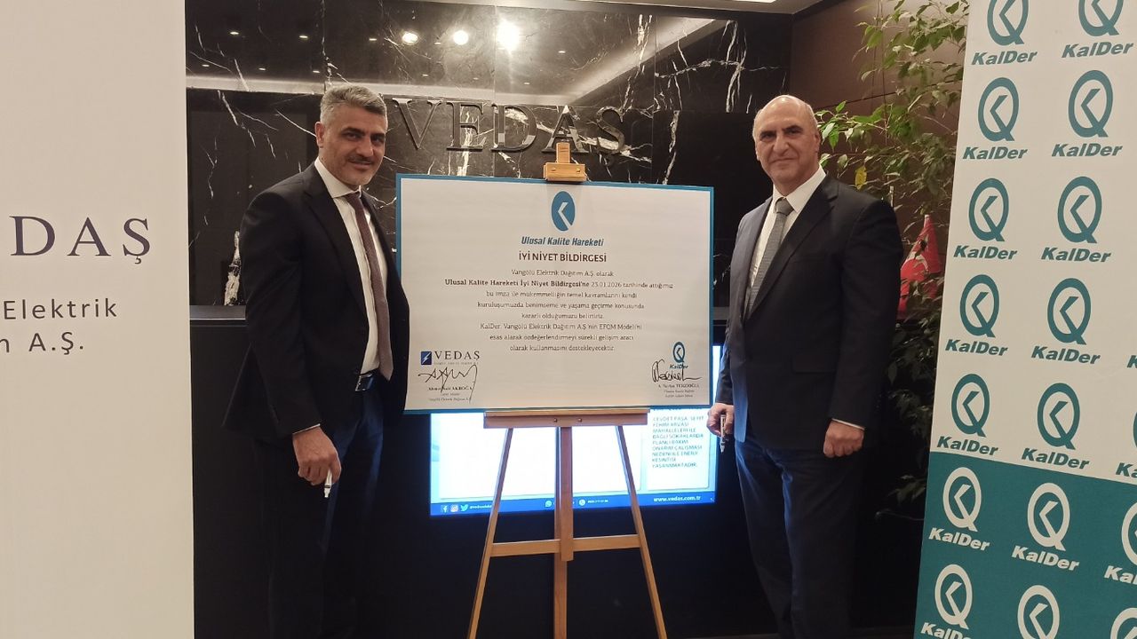 Hizmet kalitesini sürekli geliştirmeyi hedefleyen VEDAŞ, kalite odaklı yönetim anlayışını güçlendirmek amacıyla Türkiye Kalite Derneği (KalDer) ile İyi Niyet Bildirgesi imzaladı. İmzalanan bildirge ile kurumsal mükemmellik, sürdürülebilirlik, süreç iyileştirme ve paydaş memnuniyeti alanlarında ortak çalışmalar yürütülmesi, kalite kültürünün kurum genelinde yaygınlaştırılması ve iyi uygulama örneklerinin desteklenmesi hedefleniyor. VEDAŞ Ankara Temsilcilik Ofisi’nde 23 Ocak 2026 tarihinde gerçekleşen imza töreni, VEDAŞ Genel Müdürü Ahmet Sait Akboğa ve KalDer Ankara Şubesi Yönetim Kurulu Başkanı A. Tayfun Terzioğlu’nun katılımıyla gerçekleşti.
