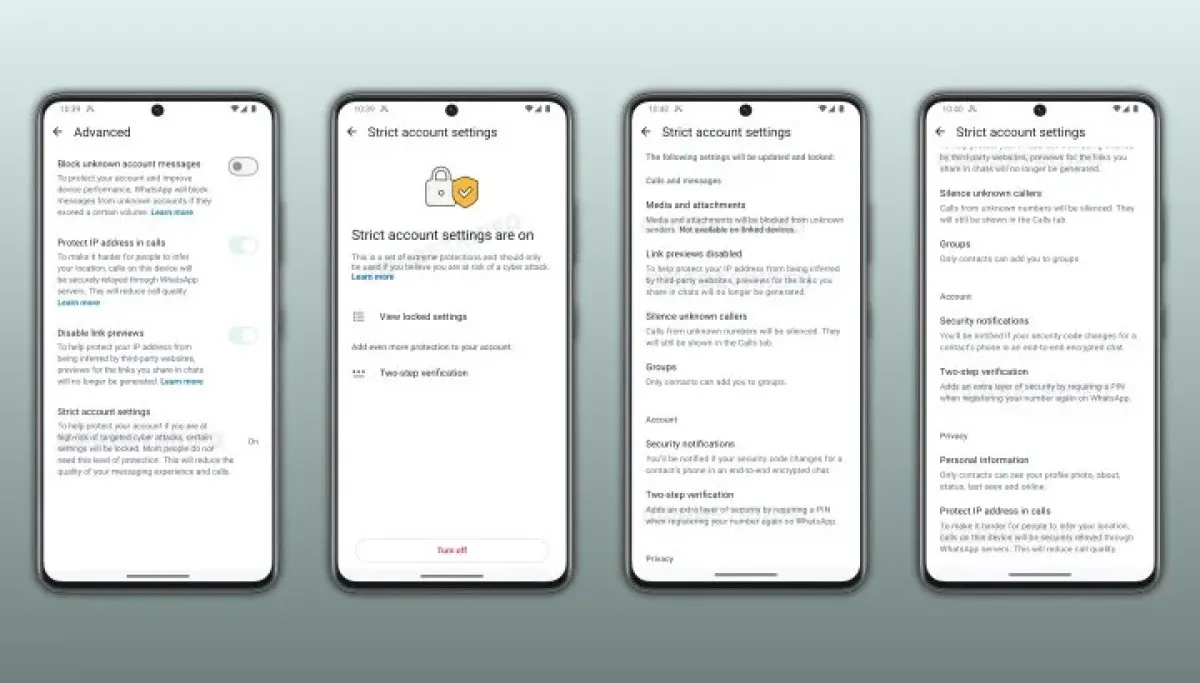 Yeni geliştirilen seçenek sayesinde kullanıcıların artık karmaşık güvenlik ayarlarını tek tek elle değiştirmesine gerek kalmıyor. Sıkı hesap güvenliği ayarı etkinleştirildiğinde, WhatsApp gerekli tüm önlemleri sizin yerinize otomatik olarak uyguluyor. Bu mod aktif edildiğinde bilinmeyen numaralardan gelen medyalar engelleniyor ve tanınmayan aramalar otomatik olarak sessize alınıyor. Ayrıca sizi gruplara ekleyebilecek kişiler sadece rehberinizdekilerle sınırlı kalıyor.