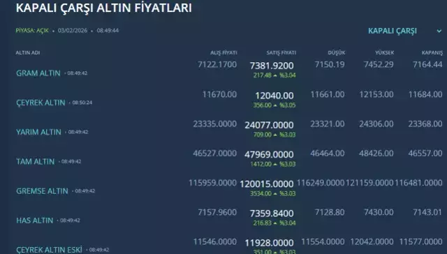 3 Şubat Salı altın fiyatlarında güncel durum şöyle: