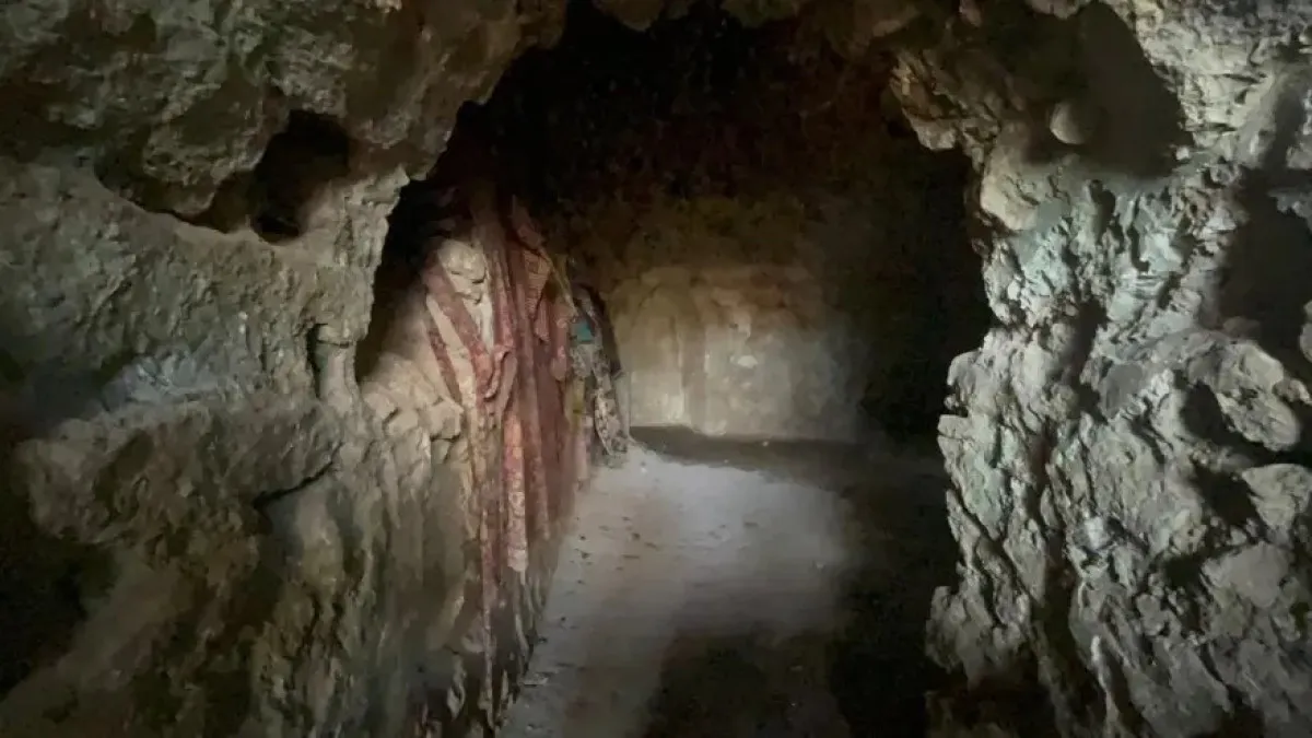 Kayalık bir yamacın altında açılan küçük bir oyuktan girilen yeraltı yapısında mihrap, duvarlara gömülü ses yalıtımı amacıyla kullanıldığı değerlendirilen onlarca küp ve kimliği bilinmeyen büyük bir mezar bulunuyor.