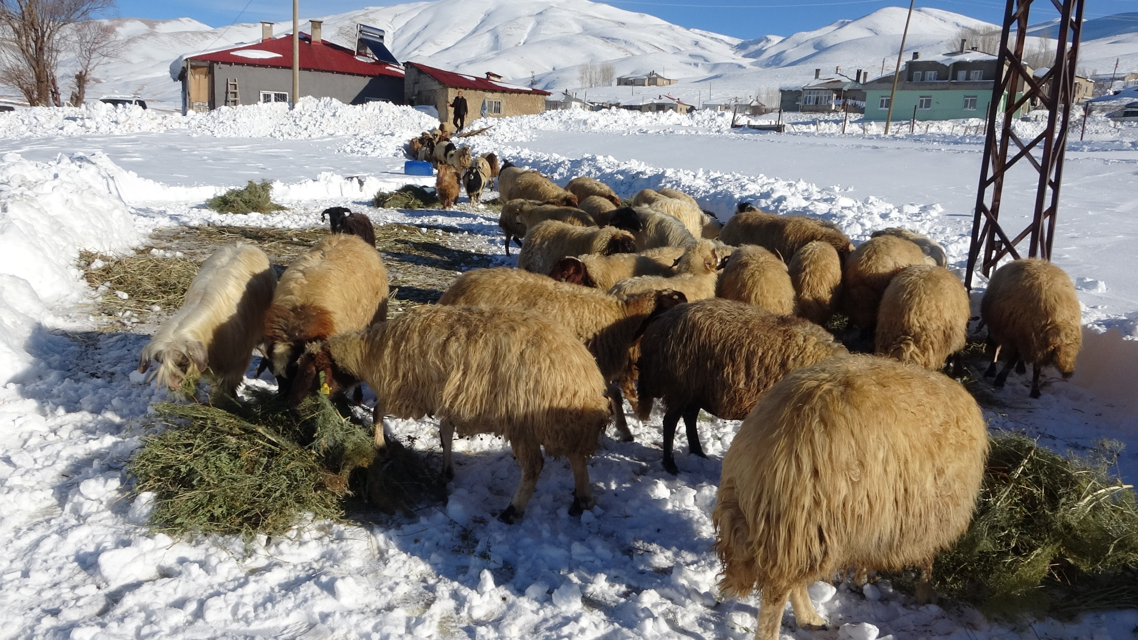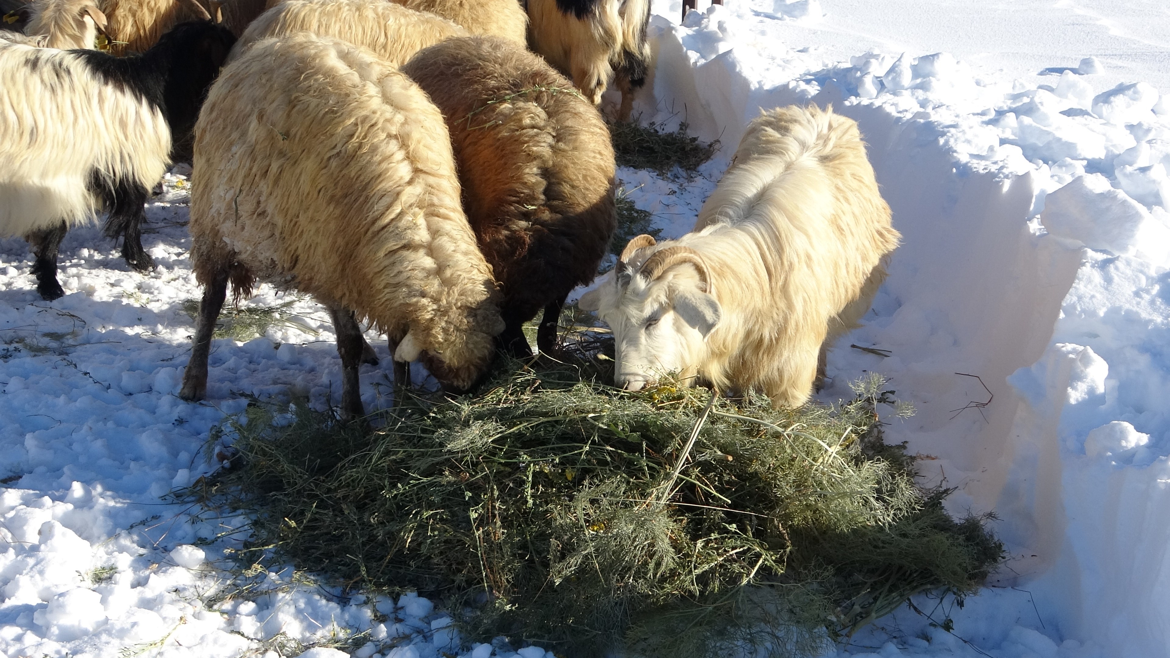 Bu yıl yoğun bir kar yağdığını ifade eden Mikail Çalışkan, "Koyunlara ot vermek için alanı kardan temizliyorum. Bu sene kar yoğun bir şekilde yağdı. Biraz fazla eziyet çektik ama değdi. Günde 2 kez hayvanları dışarı çıkartıp yem veriyoruz. Zor olsa da bunu yapmak zorundayız" dedi.
